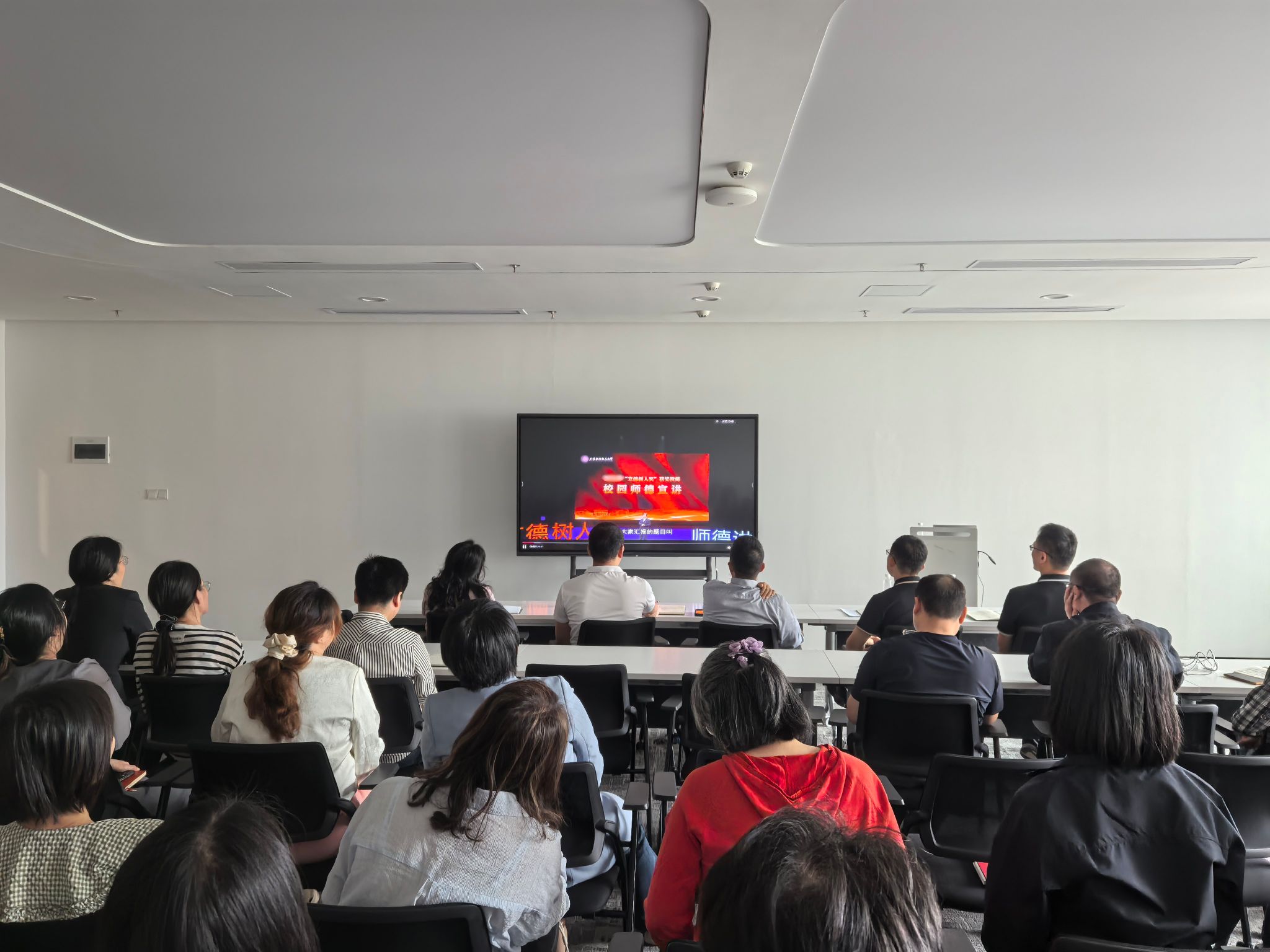 会议第二阶段,学院组织全体教职工开展师德专题集中学习,通过观看教育专题片,引导教职工学习弘扬教育家精神,坚守师德底线、践行育人初心、涵养优良教风,助力学生成长成才。